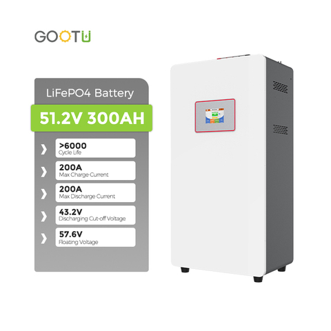 Бытовая аккумуляторная батарея gotu 51,2 В 300Ah Bms 48 В 100Ah 200Ah Lifepo4 15Kwh литиевая аккумуляторная батарея с колесами